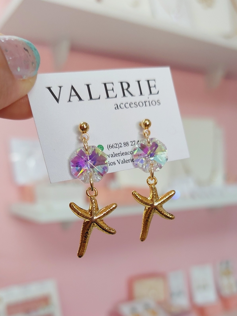 Aretes estrella de mar con cristal
